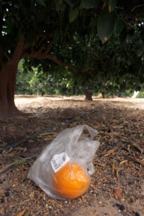 The Citrus Saga pt. 1 (stolen fruits are the sweetest) , in collaboration with Oliver Walkhoffdocuments the story of a South African-grown orange which was purchased in Europe, slowly making its way back (assisted by us) to the farm where it was cultivated. The exercise of bringing it back “home” is one of fruitless absurdity; ridiculous in that,from an ecological perspective, it is in no way its Natural habitat, and romantically hopeless in that it is a seedless navel orange – a barren clone,returning in almost perfect condition months after the end of the fruitful season.